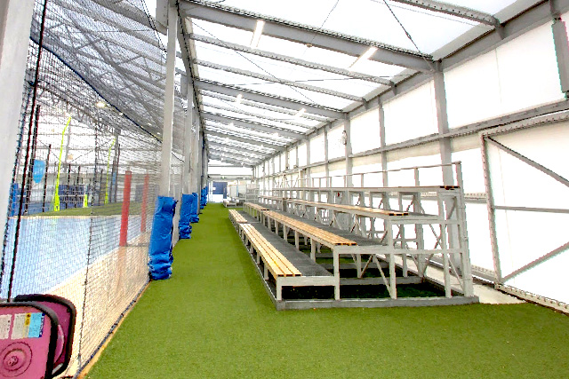 ベンチや室内から観戦可能