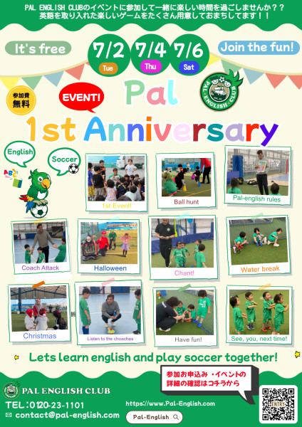 当スクールは、皆様のおかげで無事に1周年を迎えることができました。この節目を記念して、"1st Annversary イベント"を開催いたします。
